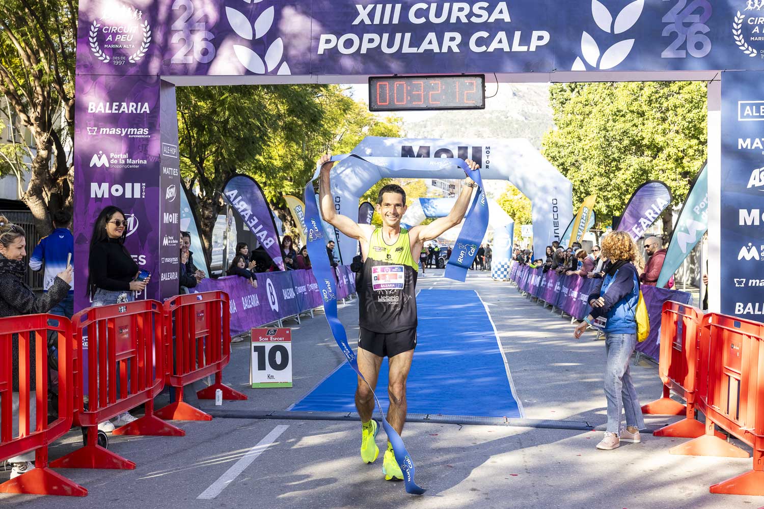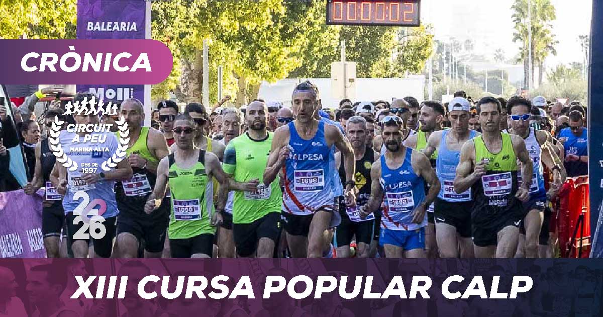 Els atletes del Llebeig es van imposar este diumenge amb autoritat i en solitari, tant en categoria masculina com femenina, en la XIII edició de la Cursa Popular Calp, els dos van repetir triomf i marquen el ritme del Circuit 2026, amb temps notables, superant-se, respecte a l’anterior edició.