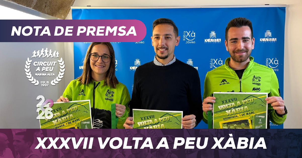 Tot preparat per a la segona prova puntuable del Circuit a Peu, el Club Esportiu Llebeig de Xàbia organitza la XXXVII edició de la Volta a Peu Xàbia Memorial José Albi, amb la col·laboració de la regidoria d’esports de l´Ajuntament de Xàbia, una prova que va ser presentada pel nou president del club José Palacio, la tresorera Ana Bisquert i l’edil d’esports Toni Molina.