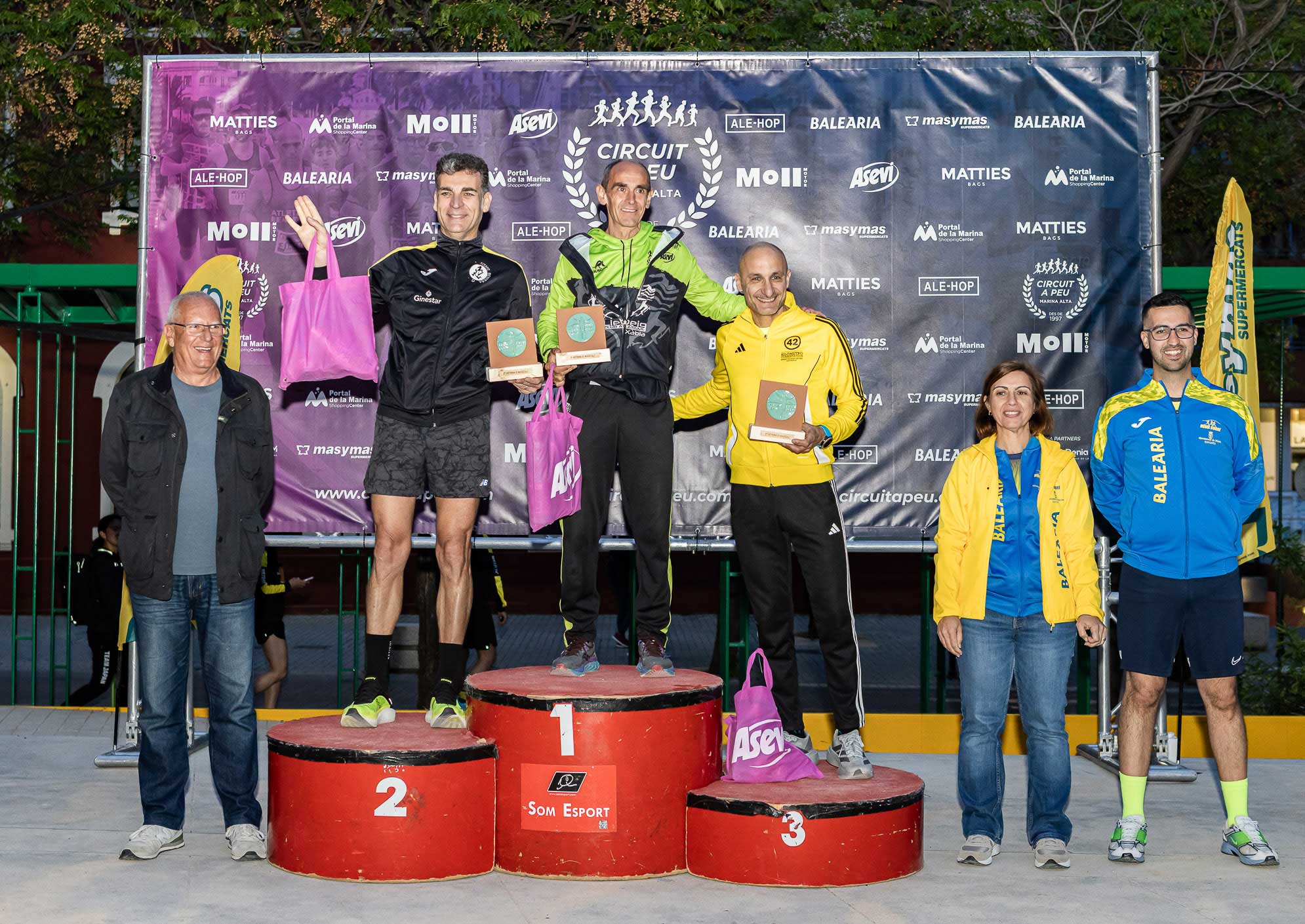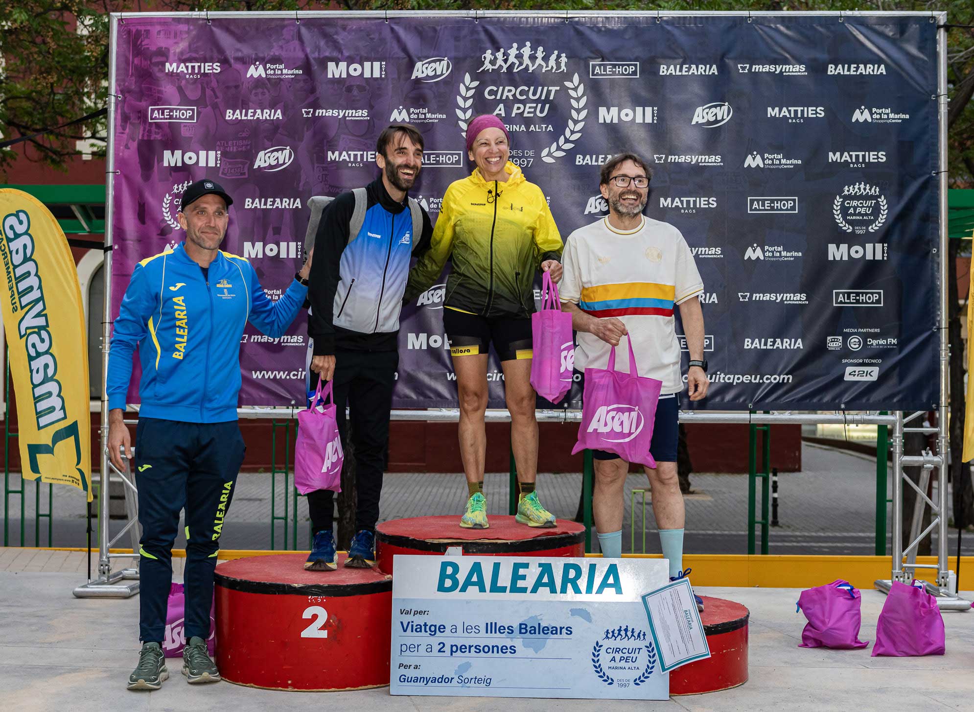Els i les afortunats en la Volta a Peu a Dénia amb els productes Asevi, van ser els vencedors de la categoria Veterans D en la prova regna, en les dos categories masculina, femenina i a tres participants dels 1370 finisher.